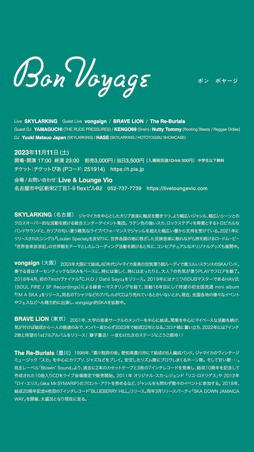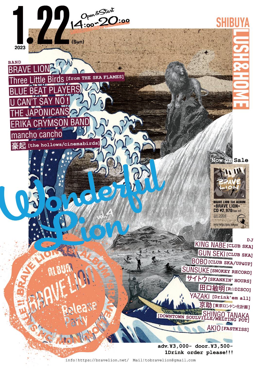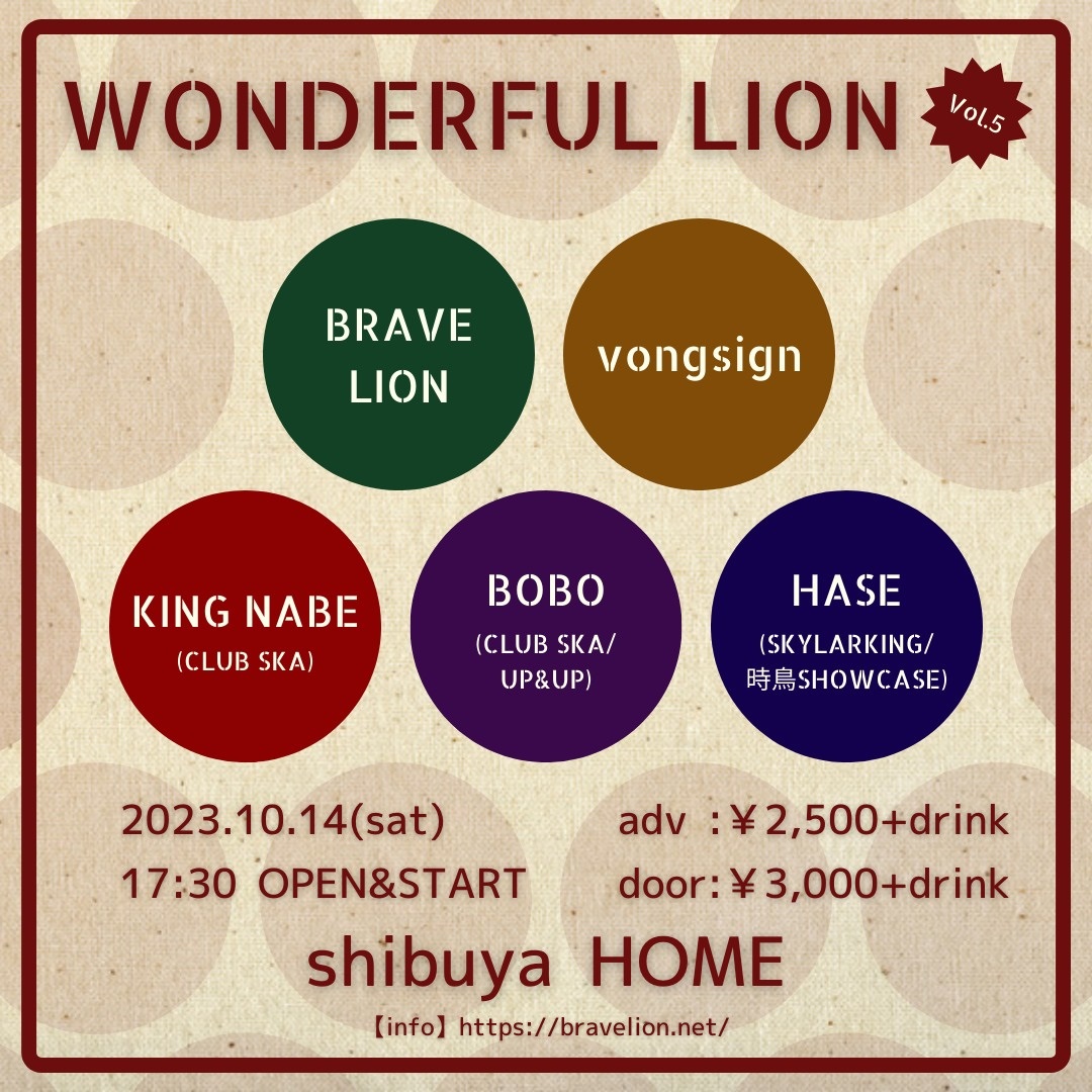 ご予約、お問い合わせはお店、またはBRAVE LION、各出演者まで